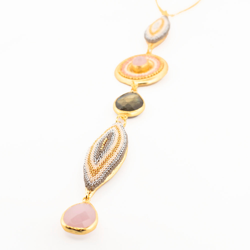 Collar Labradorita y cuarzo rosa Coyolxauhqui