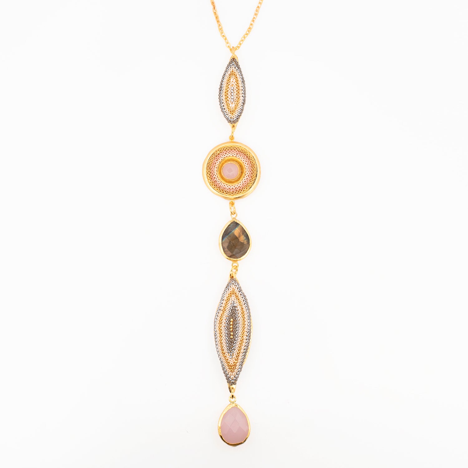 Collar Labradorita y cuarzo rosa Coyolxauhqui