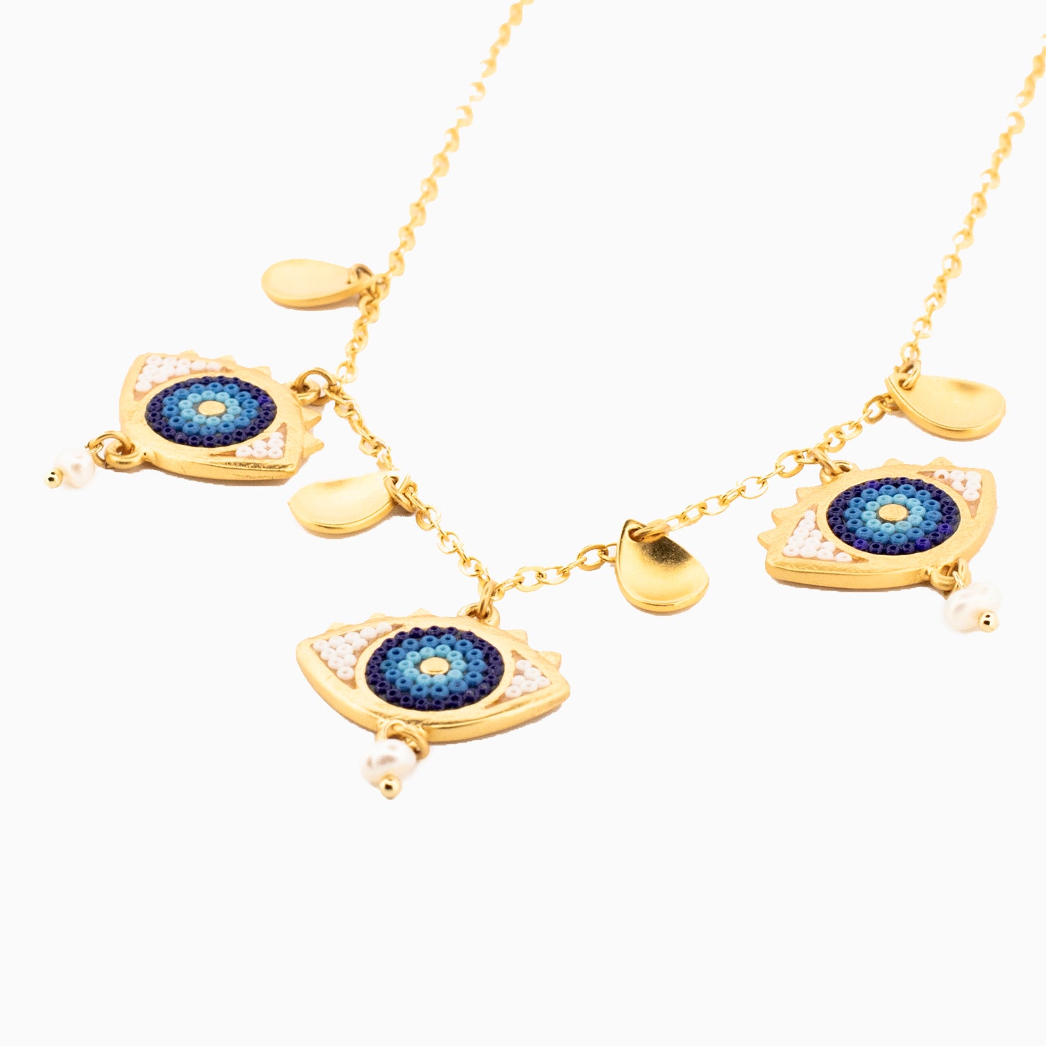 La mirada es tan poderosa que muchas culturas antiguas consideraban que bastaba un vistazo malintencionado para provocar desgracias. El ojo turco nació como una protección contra esos efectos. Este collar te protegerá ante cualquier mal augurio.