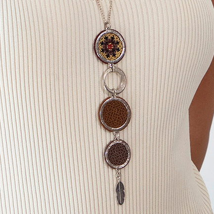 Collar Ajustable con dijes intervenidos a mano por artesanos Wixárikas (Huicholes). El trabajo artesanal es una práctica mística, una forma de meditación activa con la cual los artesanos entran en comunión con lo divino.