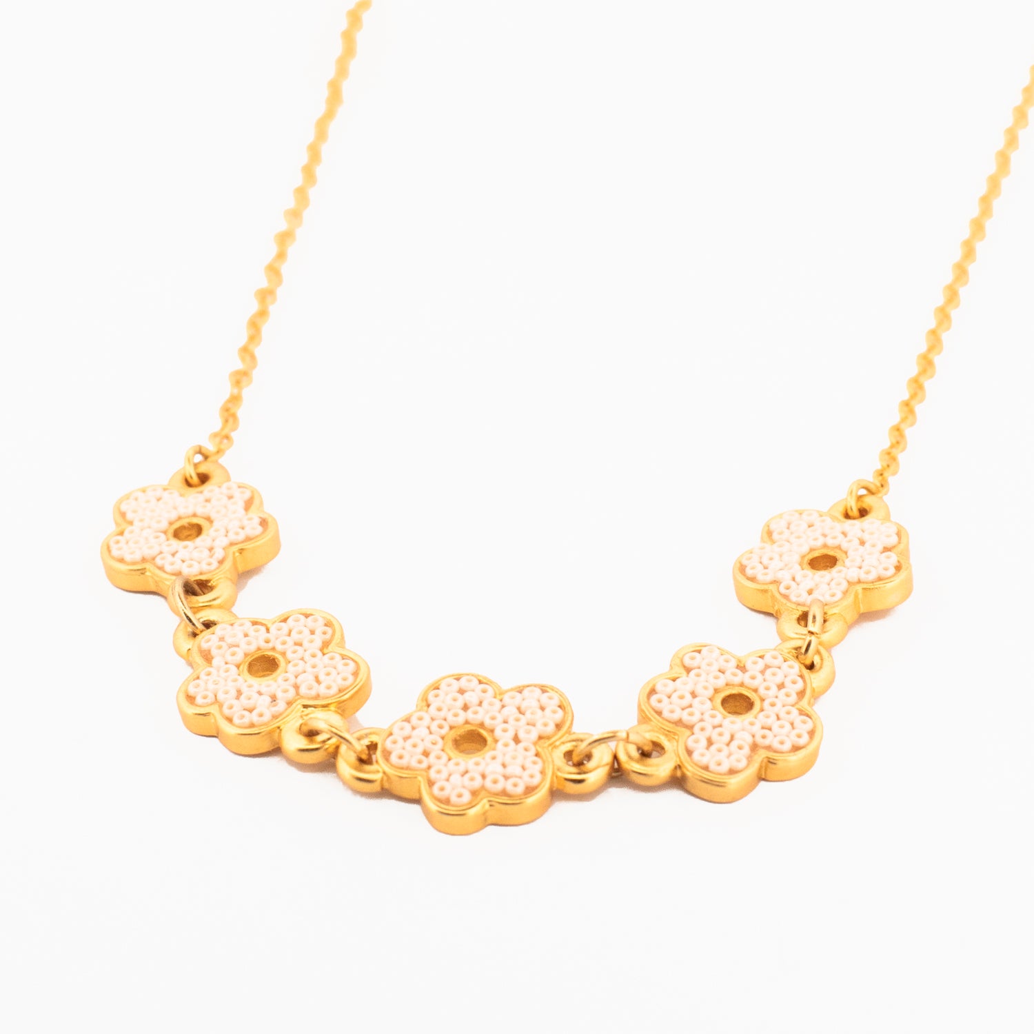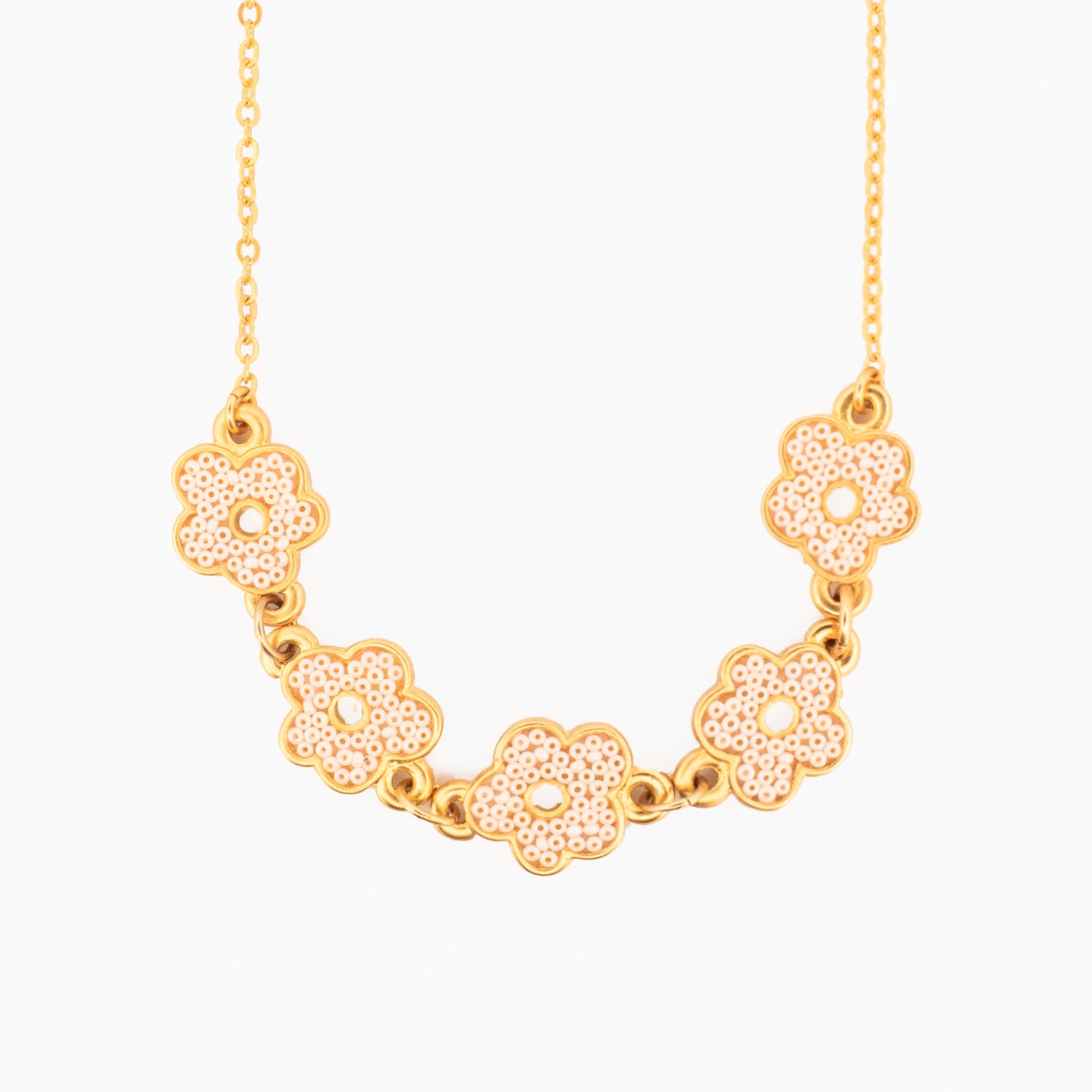 Sumérgete en un viaje de encanto y elegancia con nuestra gargantilla Prisma Floral. Un toque de fantasía para tus días, inspirado en la auténtica y delicada belleza de las flores.