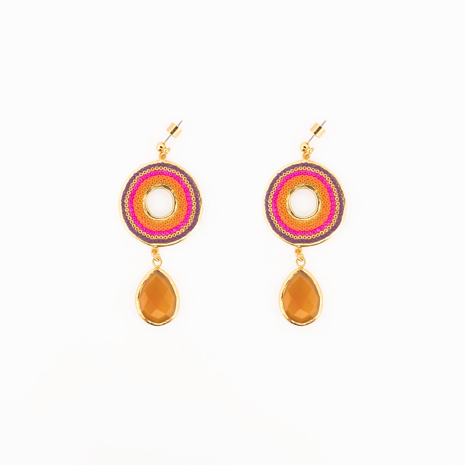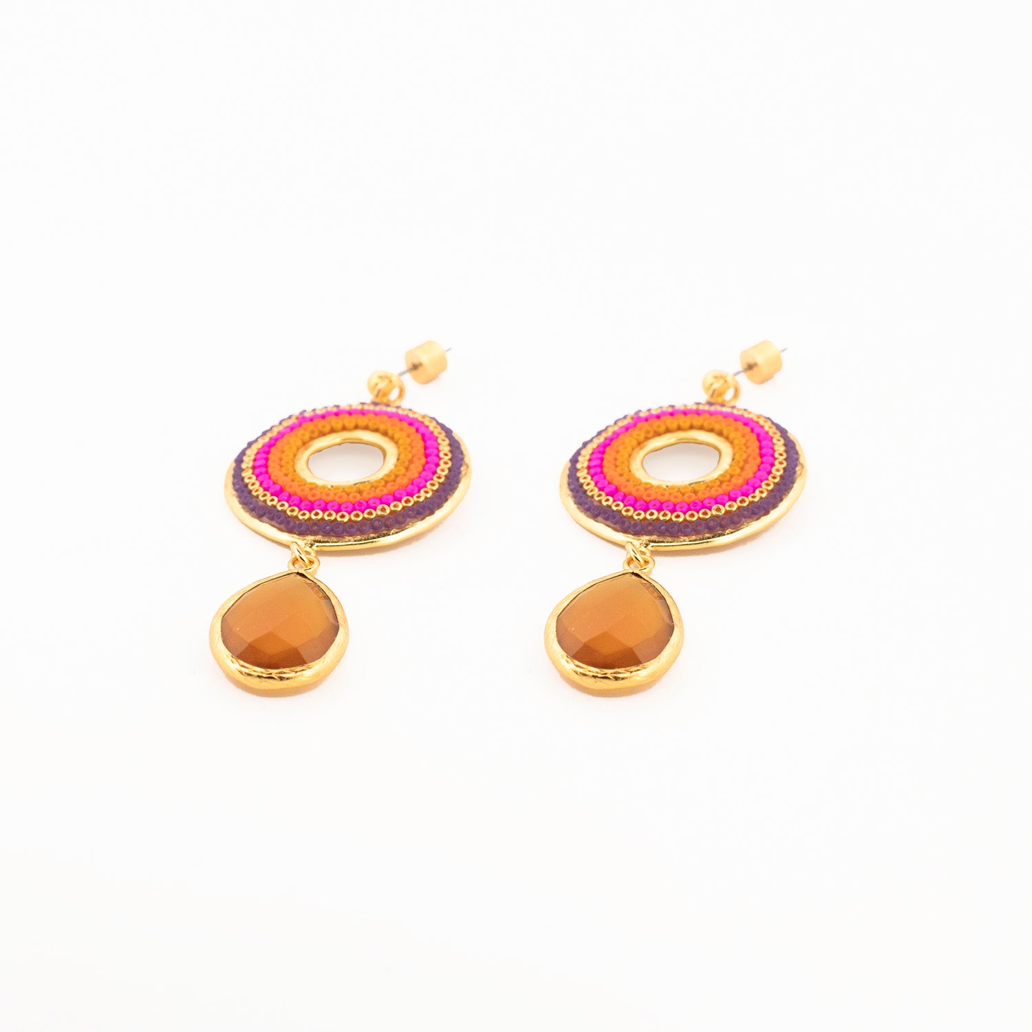 Pieza realizada en latón con baño de oro de 24k, Agatha y cristales checos, intervenida por artesanas wixárikas que preservan técnicas ancestrales vivas.