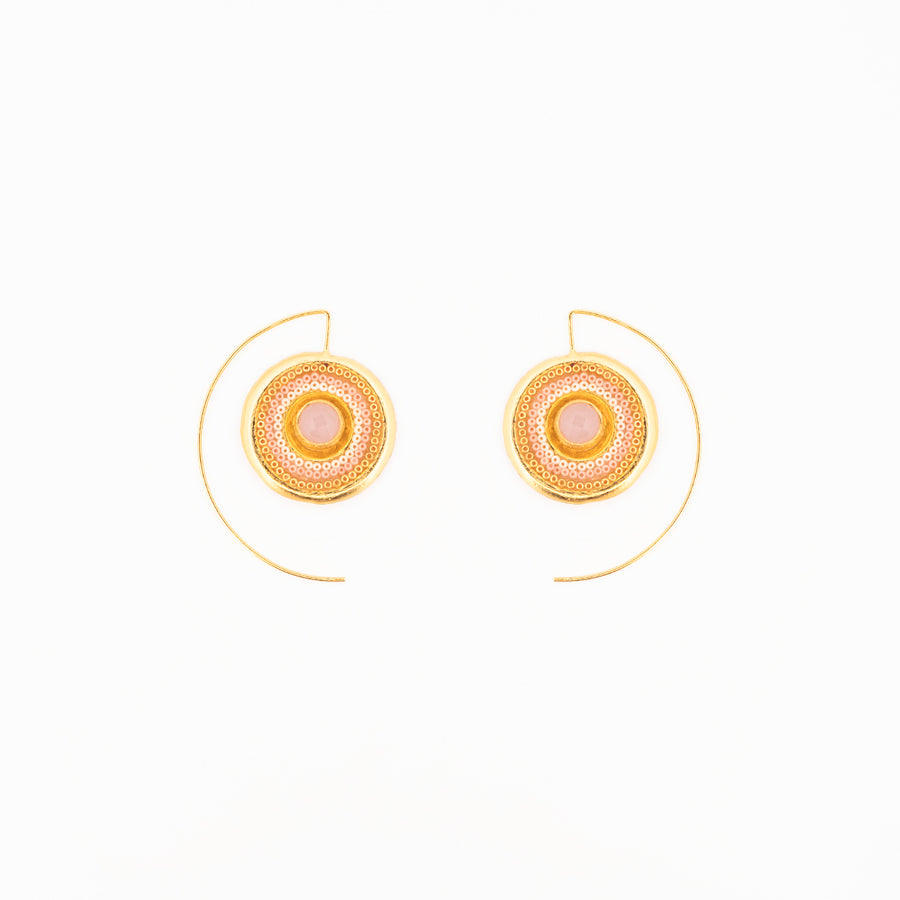 Aretes Cuarzo Rosa Coyolxauhqui