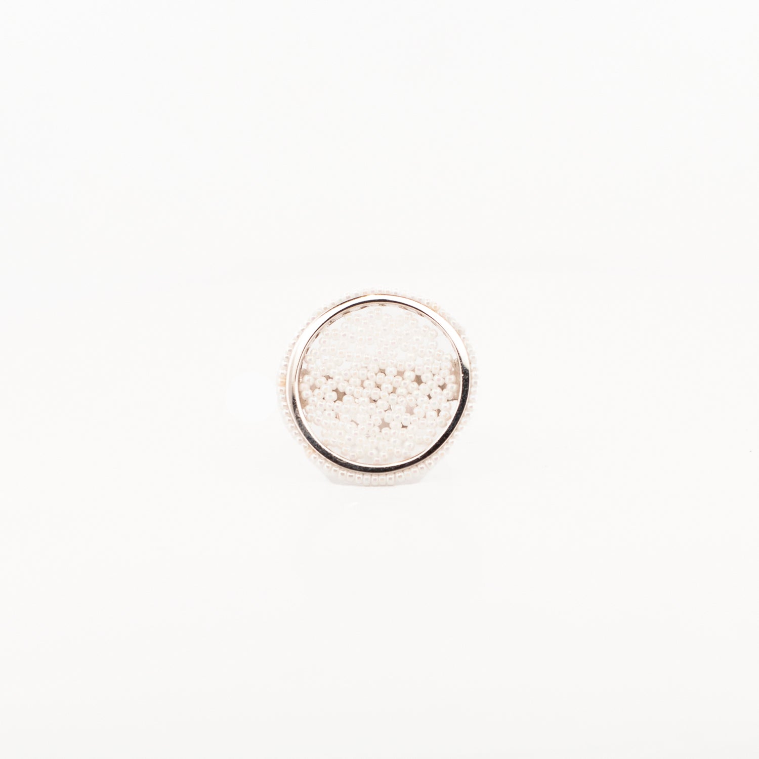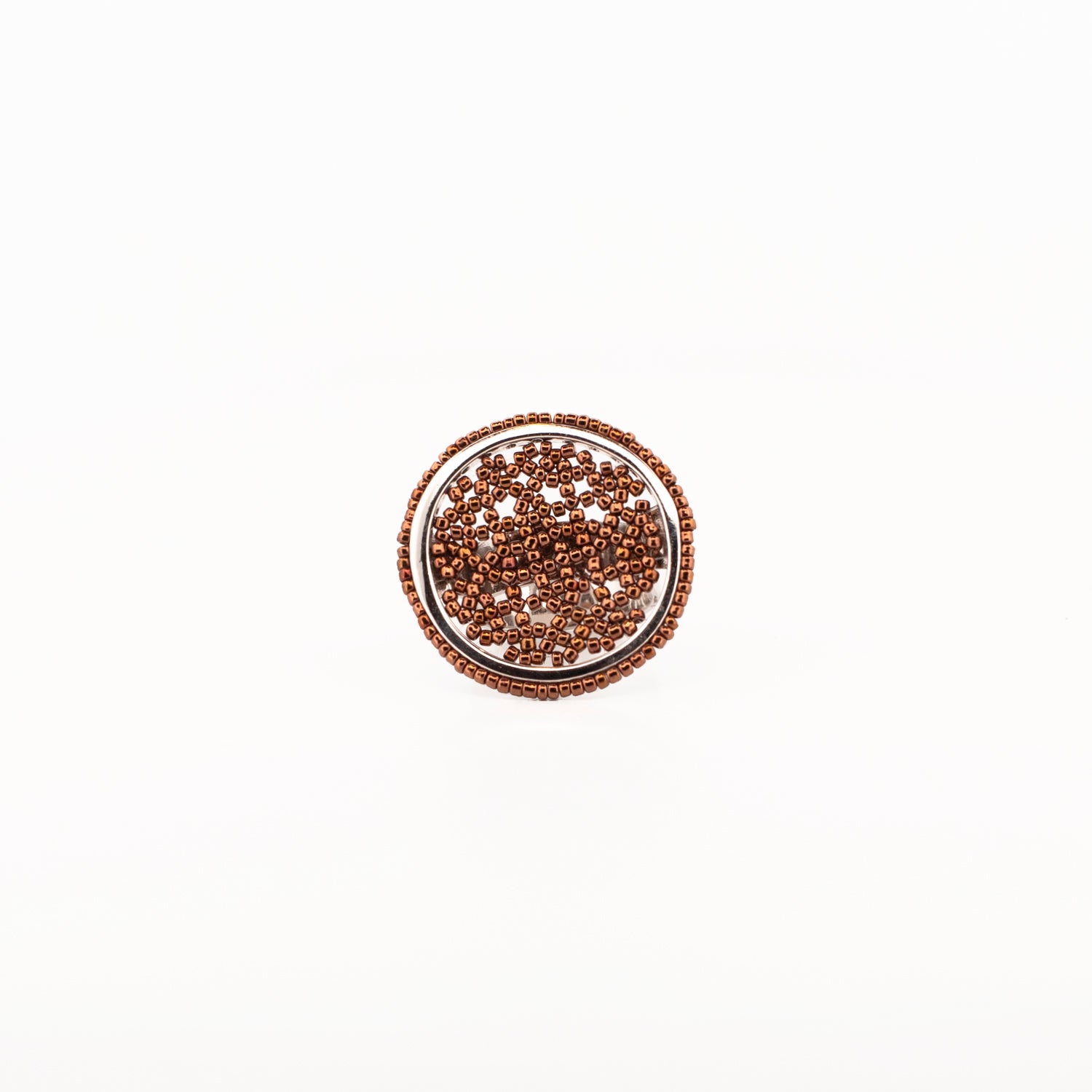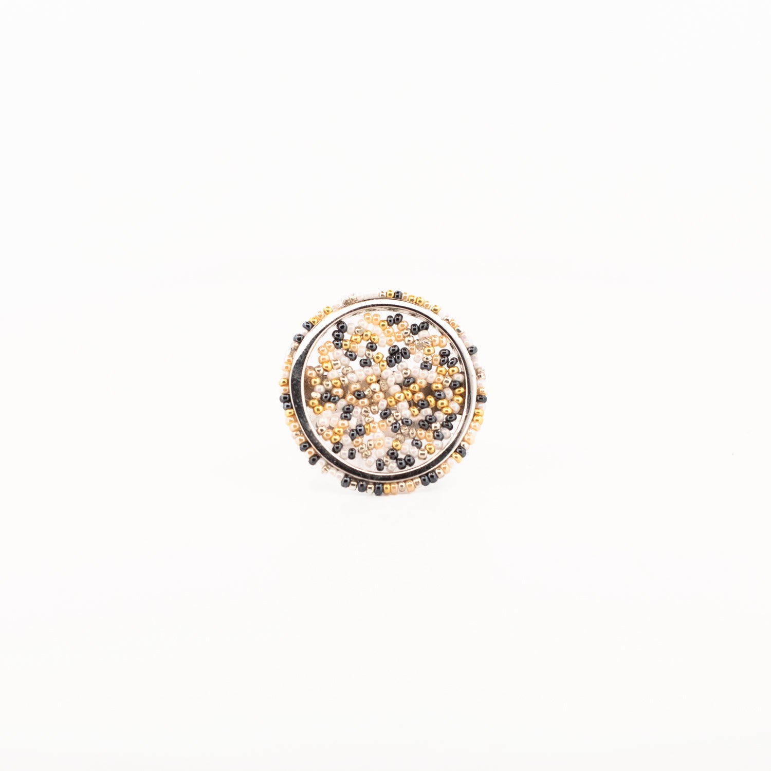 Anillo tejido a mano con cristales checos por artesanos Wixárikas (Huicholes), una pieza donde la tradición se fusiona con el lujo.