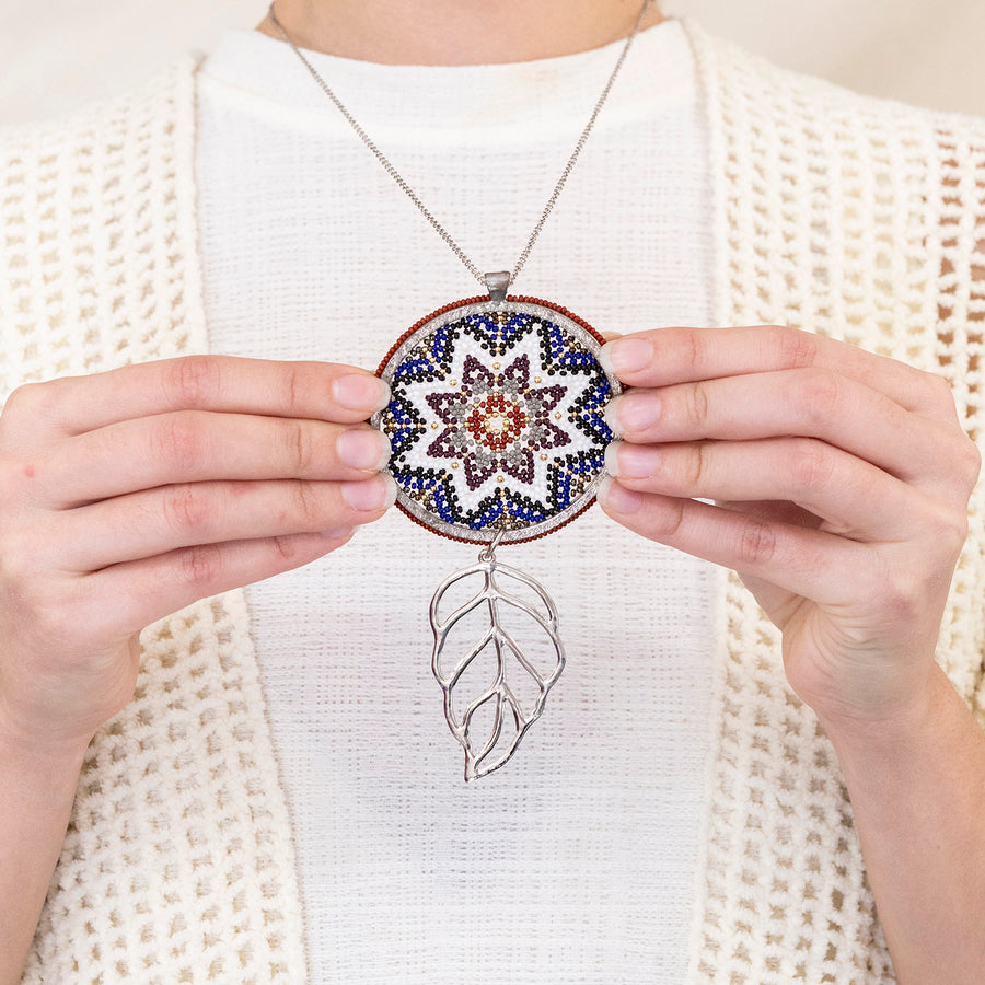 Esta pieza ha sido creada por artesanas Wixárikas (Huicholes) mediante una técnica ancestral que se ha transmitido de generación en generación. Cada hilo es entrelazado en un proceso de meditación activa, que permite a los artesanos entrar en comunión con lo divino. Esta pieza no solo refleja la maestría artesanal, sino también la profunda conexión espiritual de la cultura wixárika, transformando cada joya  en un vínculo sagrado entre el arte y el espíritu.